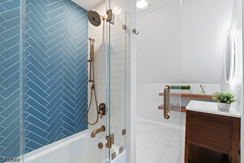 In this ideal Maplewood location on a sought after street you will find this sophisticated Dutch Colonial that has enjoyed tasteful, modern renovations and expansions. This home is truly move-in ready with four finished levels of living space. The welcoming living room with wood-burning fireplace has double access to a spacious full-depth family room. This delightful multipurpose space offers easy access to the deck and yard. A beautiful deck and slate patio lies under the winter white setting alongside delightful mature landscaping with multiple spring surprises, including hydrangea trees, tiger lilies, tulips, and fragrant lilac bushes creating a vibrant walkway entrance and a serene newly fenced outdoor setting. The first floor also boasts a formal dining room with rare architectural deep cove molding, that is adjacent to a renovated kitchen with granite counters, stainless steel appliances, complete with a breakfast bar and a convenient first floor powder room. The second level hosts three bedrooms that includes a well-appointed primary suite with double vanity, steam room and heated floor and ginormous walk-in closet that is sure to delight. The gorgeous renovated hall bathroom is an added bonus. On the third floor you will find a junior suite with a spacious bedroom and newly upgraded private full bath that offers a peaceful retreat. Bonus room in large basement for use as a rec room that also houses the second half-bath.
