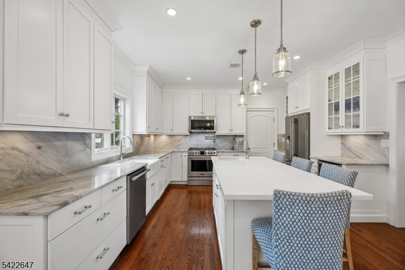 This exceptional 2018 built home offers modern living with high ceilings, refined finishes, and a thoughtfully designed layout throughout. The first floor features a seamless wonderful open floor plan between the living room, dining area, and well appointed kitchen, complemented by a mud room, laundry room, and powder room for everyday convenience.The second level includes three spacious bedrooms and two full baths. The private primary suite features a full bath with a dual vanity, a soaking tub and shower. The third floor provides added versatility with an additional bedroom and full bathroom perfect for guests, a home office, or private retreat.The fully finished basement expands the home's functionality with a large family room, additional bedroom, full bathroom, and utility space.The backyard is a true oasis, designed for both entertaining and relaxation, featuring an outdoor kitchen, dedicated dining area, fire pit area with outdoor lighting throughout the yard and low maintenance with artificial turf and grass.