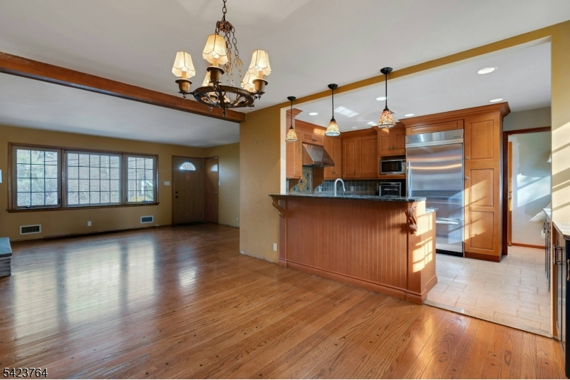 Welcome to 43 King George Road, a 2-acre flat property located in beautiful Warren where serene living meets endless possibilities! This charming raised ranch features three well-sized bedrooms, wood floors, and a gorgeously renovated full bath with custom marble tile work, a beautiful inlay design, and sleek glass doors. The thoughtfully updated custom kitchen is designed to impress! With custom ceiling height cabinetry, an industrial-sized KitchenAid refrigerator, a striking stone sink, and a breakfast bar, it's a dream kitchen for entertainers. The open layout creates an inviting flow, perfect for everyday living. The two oversized garages will be perfect for all your storage needs. The basement is a canvas waiting for ideas. With a full bath and tons of open space, the possibilities are endless. Set on a stunning, tranquil property, the outdoor space offers the perfect setting for your vision whether you dream of a lush garden retreat, play area, or simply enjoying peaceful surroundings. A whole-house generator adds year-round peace of mind. Just minutes from downtown Warren, the center of Martinsville, Route 22 & Highway 78. Don't miss the opportunity to make this property your own!